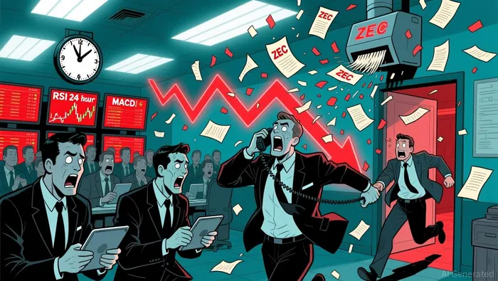 Technical indicators suggest bearish momentum. ZEC is currently trading below the 50-day Exponential Moving Average (EMA) and near the 100-day EMA. The Relative Strength Index (RSI) and Moving Average Convergence Divergence (MACD) both point to a strengthening bearish trend.